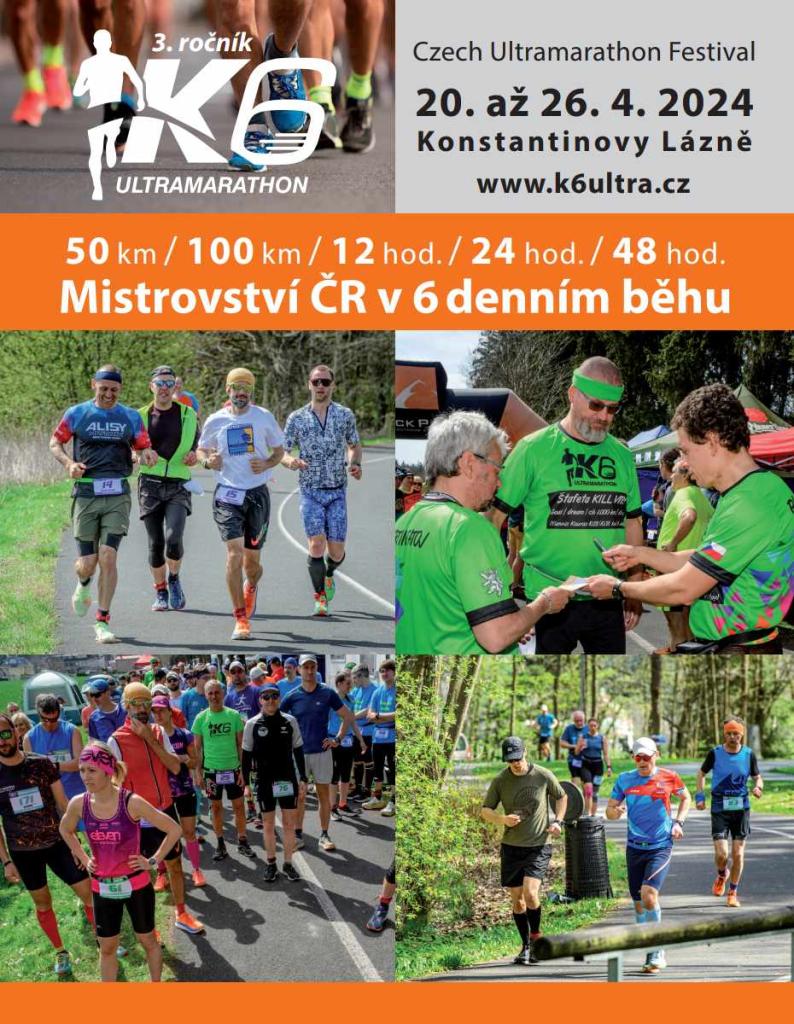 Poslední dubnový týden se opět sjedou do Konstantinových Lázní účastníci K6 Czech Ultramarathon Festivalu. Na startu se objeví minimálně 80 ultramaratonců ze 17 států světa!