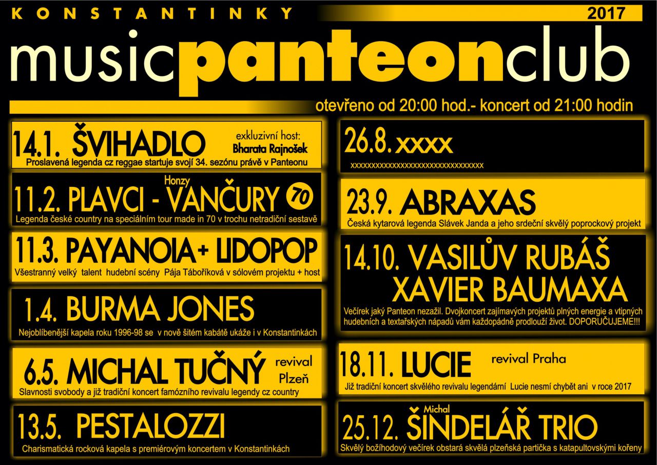 Aktuální prográmek hudebního klubu Panteon